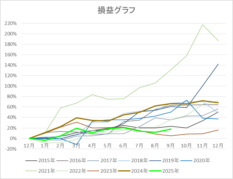 自分の成績は、9月:+5.85%で年初来パフォーマンス+17.62%になりました。(税引前)