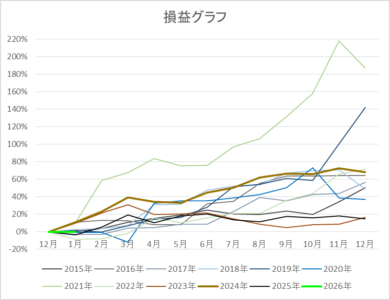 自分の成績は、12月:-3.35%で年初来パフォーマンス+14.96%になりました。(税引前)